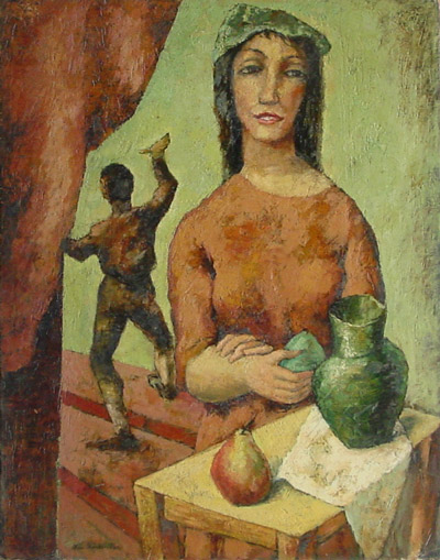 Woman with a White Vase Oil on Canvas: 22 x 28" |